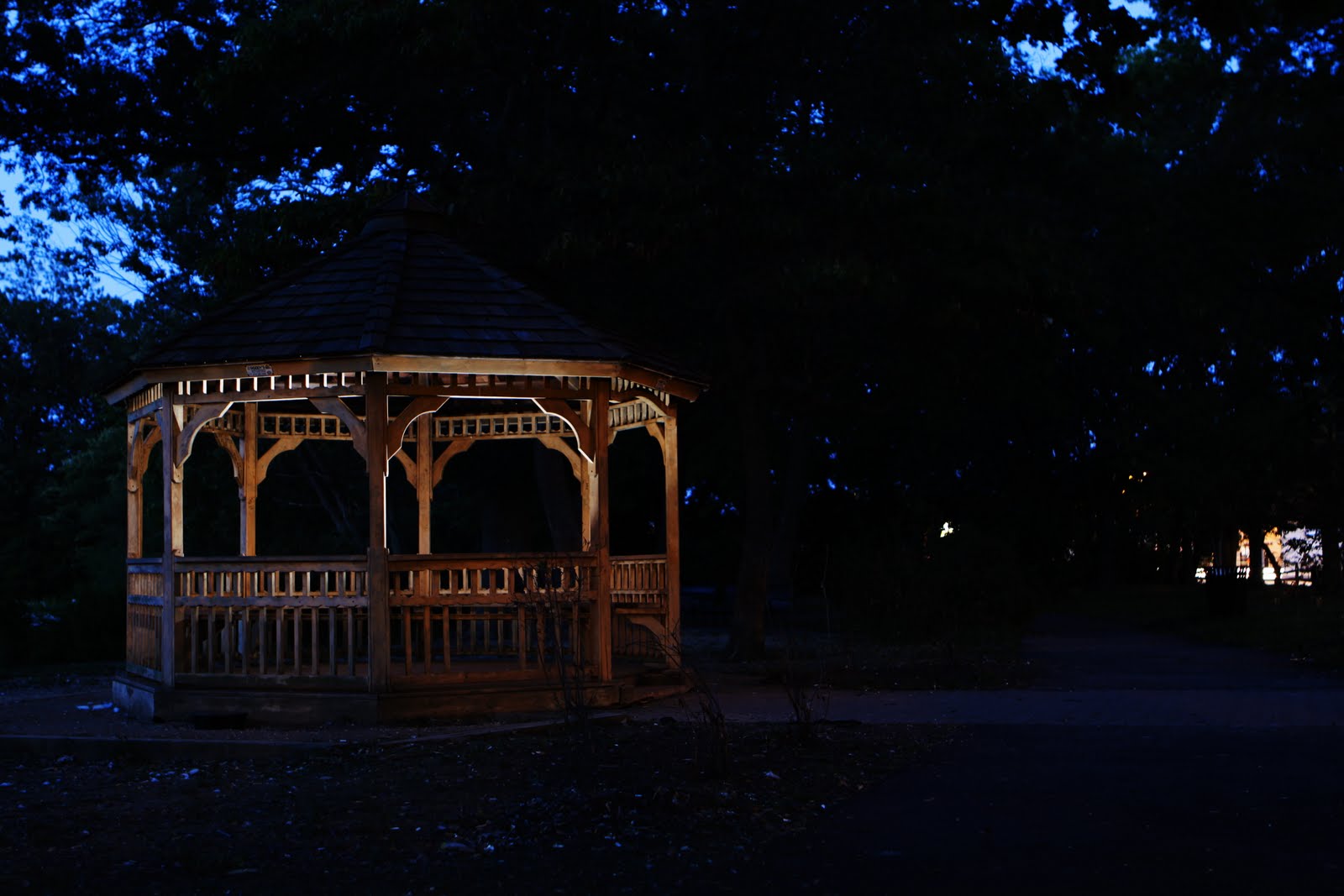I set the speedlight on the bench of the gazebo at full power and fired it via radio trigger. I think I'll try this again with multiple lights.